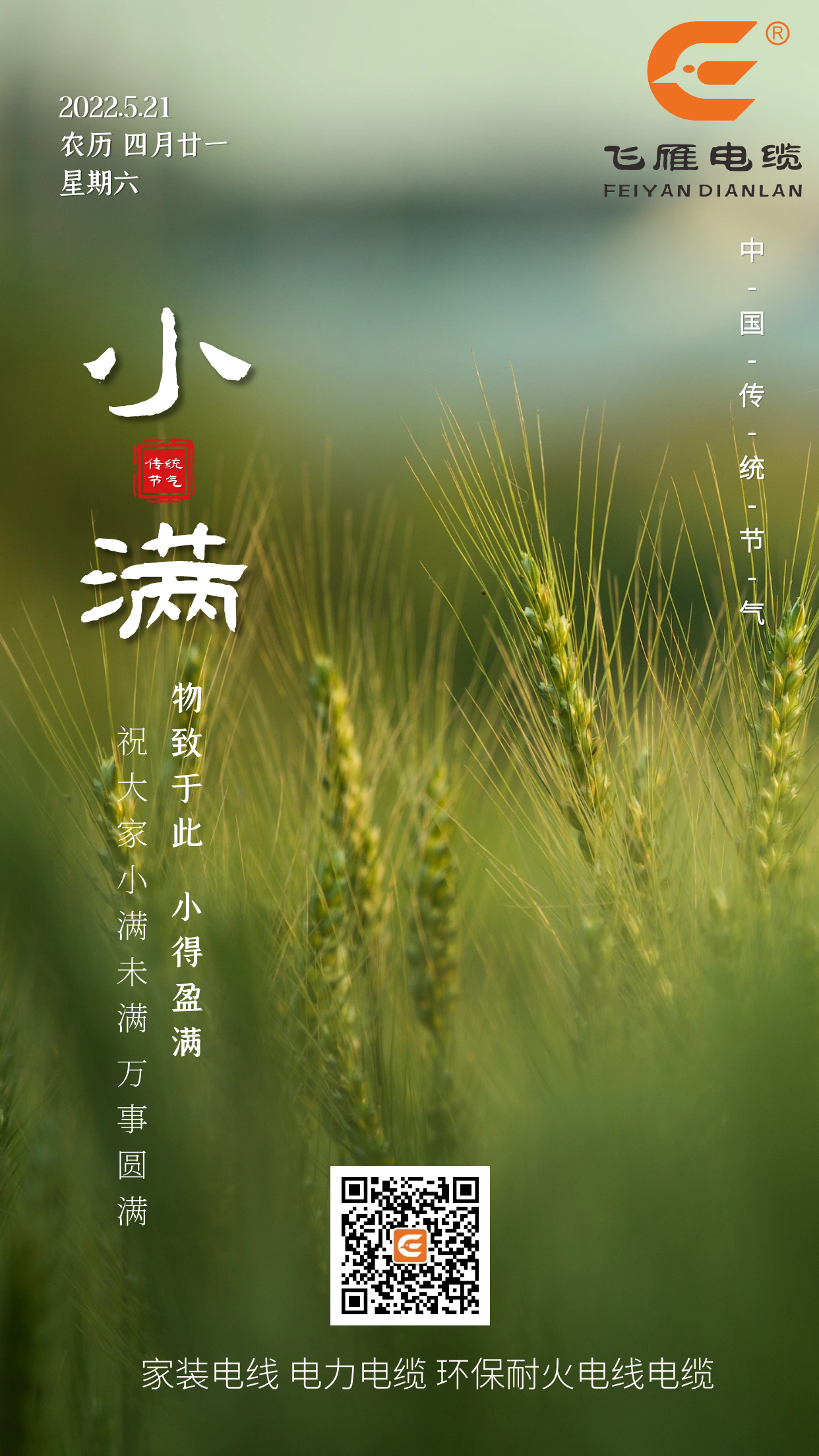 小滿——其含義是夏熟作物的籽粒開(kāi)始灌漿飽滿,但還未成熟,只是小滿,還未大滿。每年5月20日到22日之間視太陽(yáng)到達(dá)黃經(jīng)60°時(shí)為小滿。