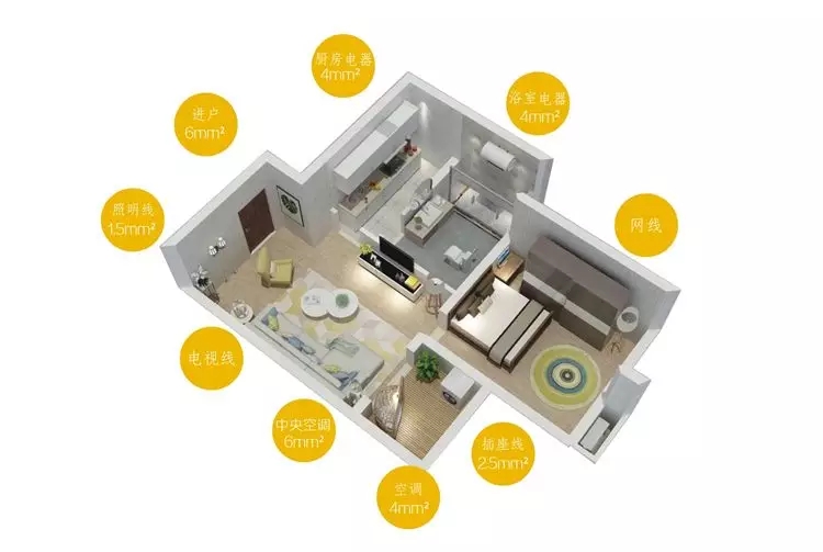 考慮到電熱水器、電加熱器等大功率設(shè)備,電源線建議4平方電線。