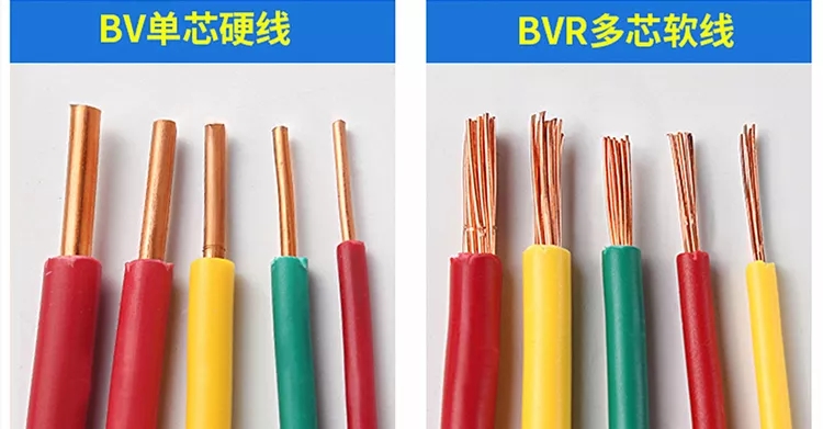 BV是一根銅絲的單芯線,BVR是好多股銅絲絞在一起的單芯線,RV是更多股銅絲絞在一起的單芯線。