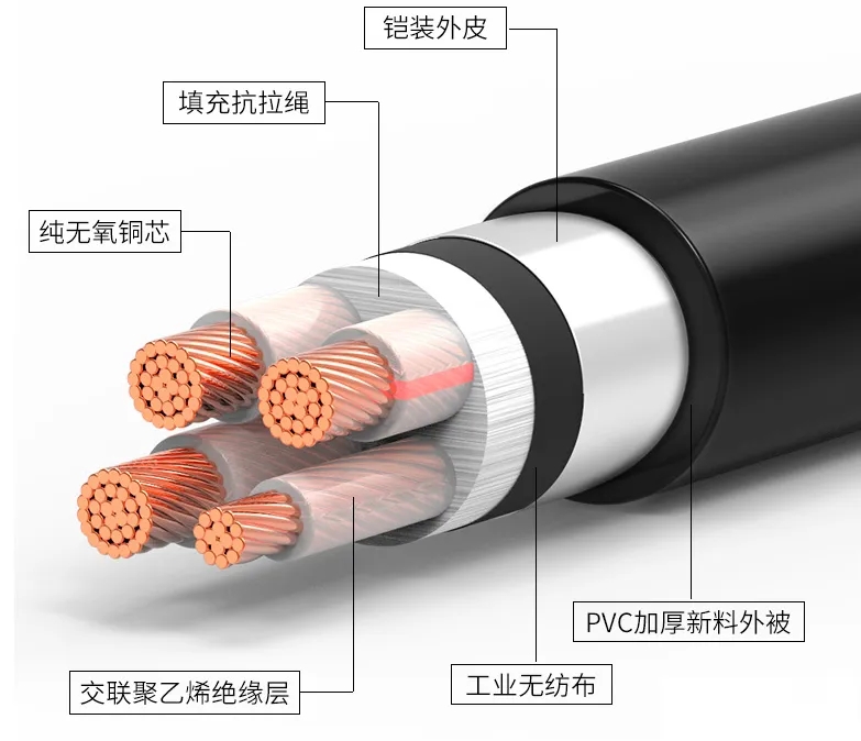 2、電纜帶有鎧裝層,還可增強(qiáng)抗拉、抗壓等機(jī)械保護(hù),延長(zhǎng)使用壽命。